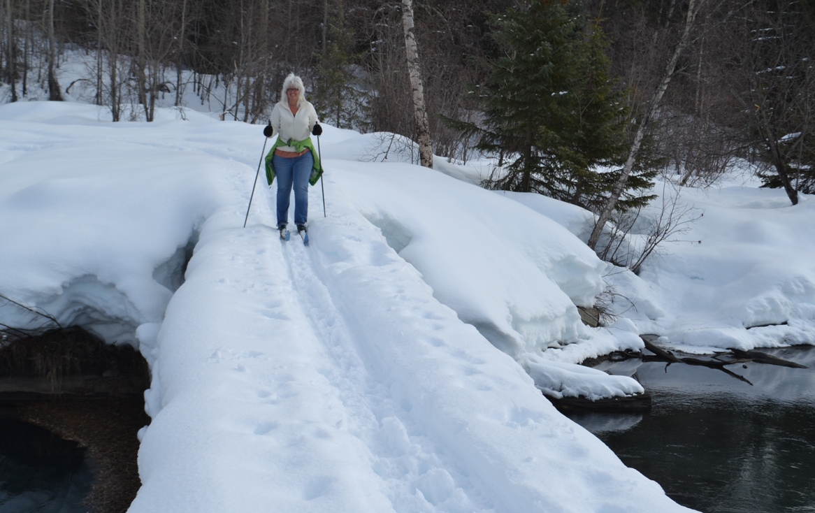 We still managed to get a few days of skiing in the last week of March. We can drive 25 miles out of town where there is still plenty of snow in the forest and it is good enough to ski on. The elevation is only a couple of hundred feet but the temperature near the coast is much warmer than out the highway because the ocean actually warms the air.